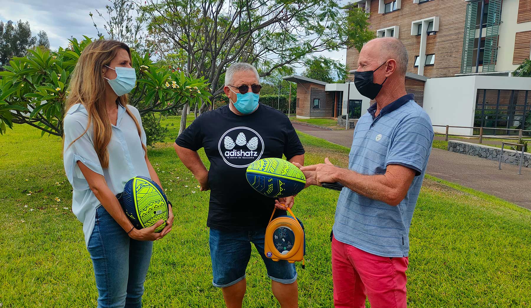 Jean Michel Campistron, co-fondateur de l’association a ainsi pu remettre un défibrillateur au président de l’association sportive 974 action (beach rugby), Claude Henry. Quatre autres défibrillateurs seront également offerts à des organismes de l’île œuvrant dans la discipline rugby.