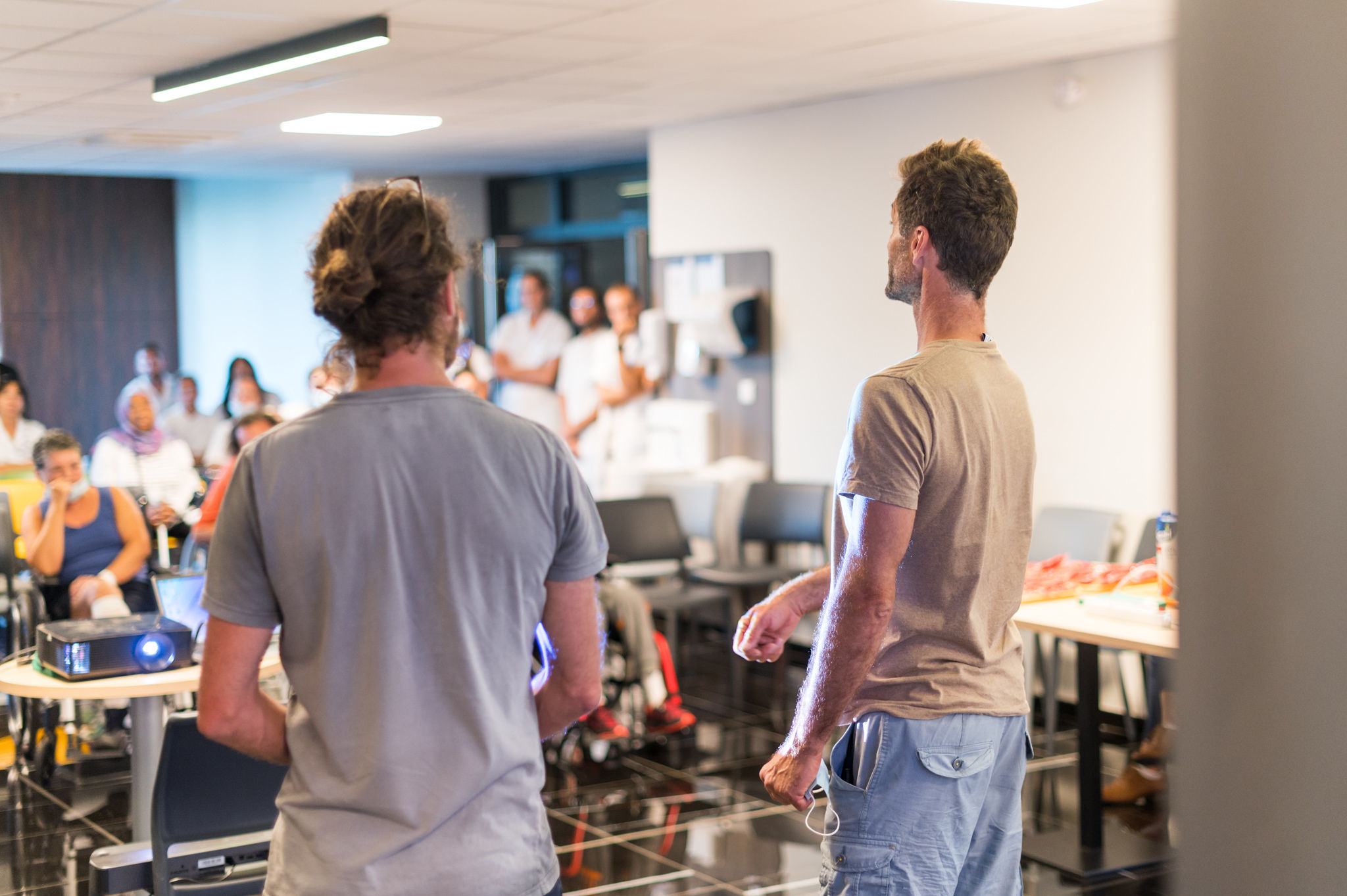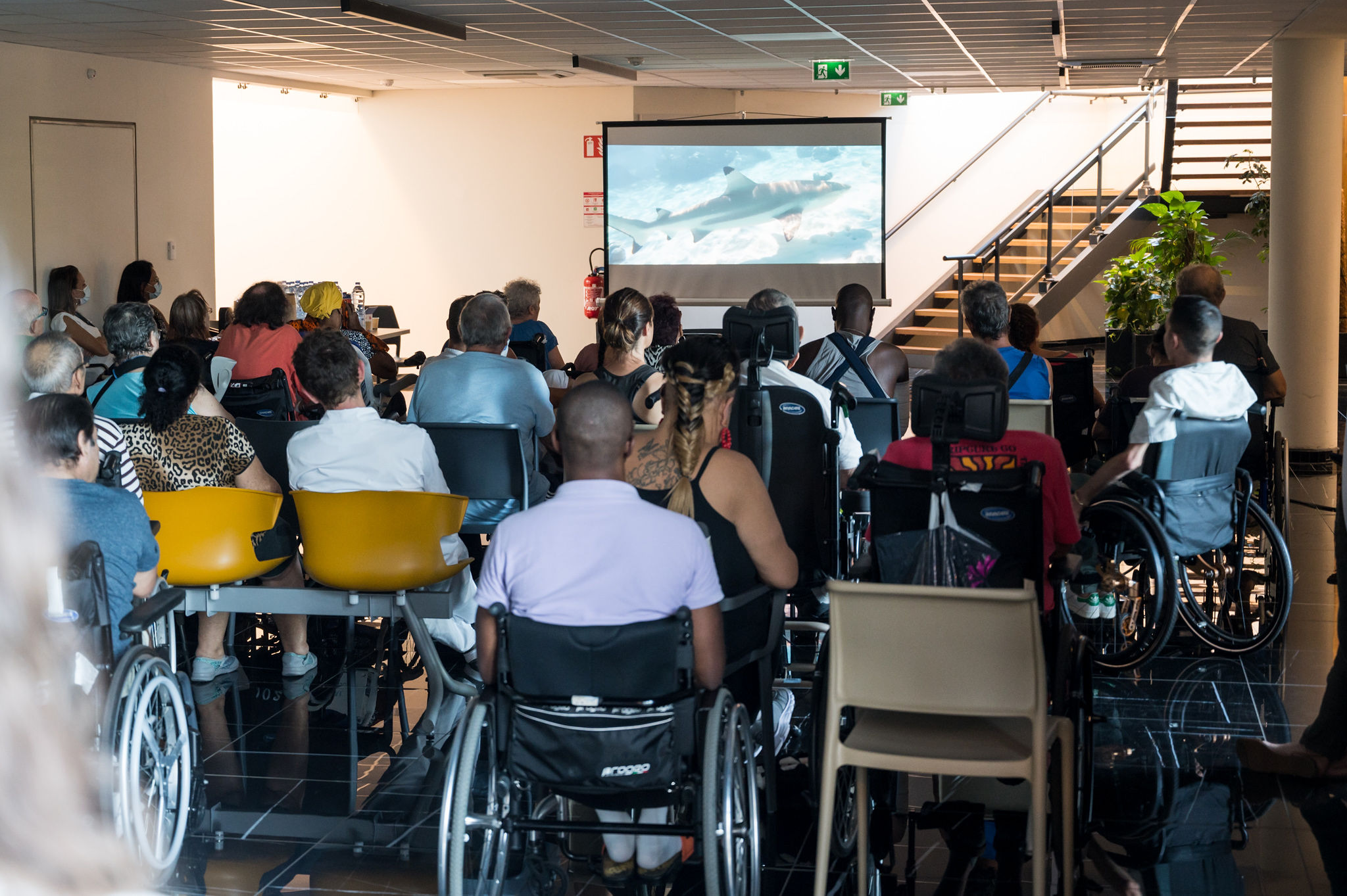 Eric Dargent, para-surfeur professionnel, présente son film ORA aux patients de La Clinique Les Tamarins Sud : retour en images